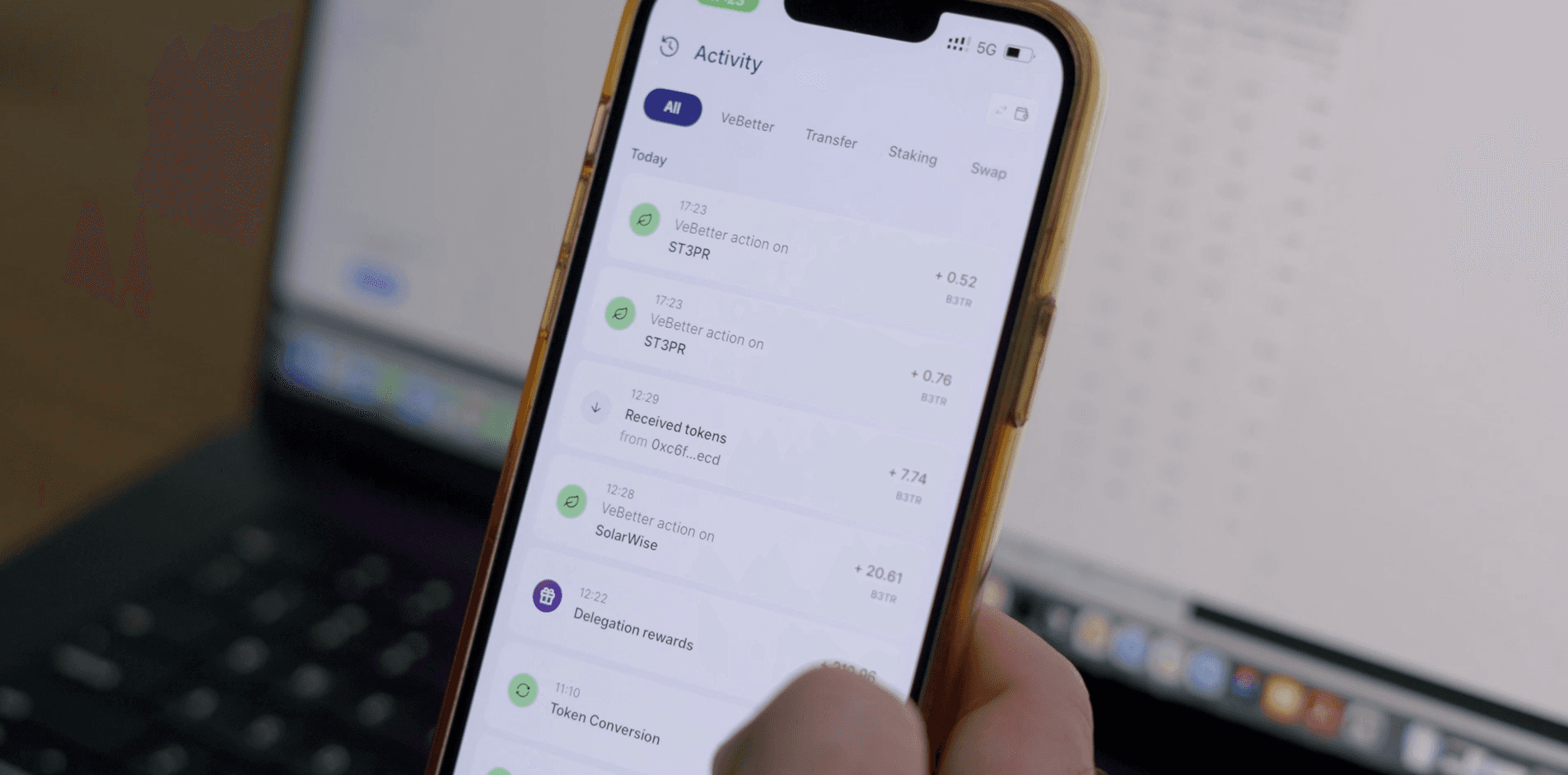 VeBetter rewards users with B3TR tokens: digital tokens that represent both personal achievement and collective environmental impact. These tokens can be redeemed for discounts, vouchers, or used to support new sustainable initiatives within the platform.